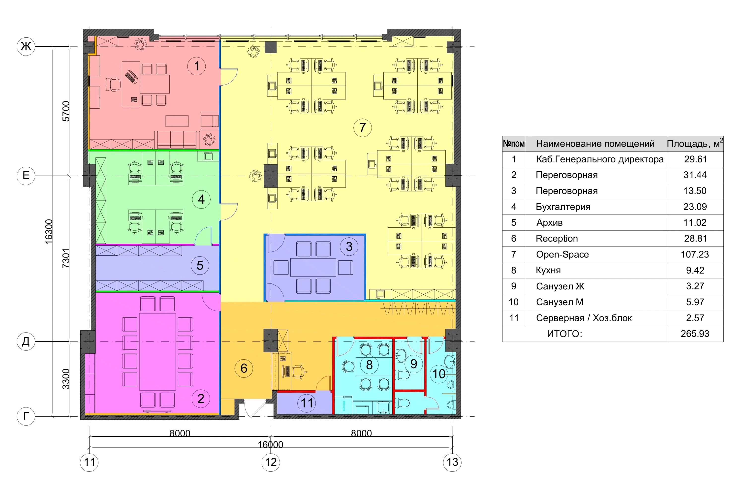 FAW Group – старейшая китайская автомобилестроительная компания, основанная в 1953 году. Для открытия представительства в Москве, был выбрано помещение в бизнес-центре на Научном проезде, который располагается на юго-западе города. При разработке проекта офиса было принято решение о разделении пространства не несколько рабочих зон, куда войдут пространства в формате «open space», отдельные кабинеты, несколько переговорных комнат, ресепшн с зоной ожидания для посетителей, а также место для приема пищи.