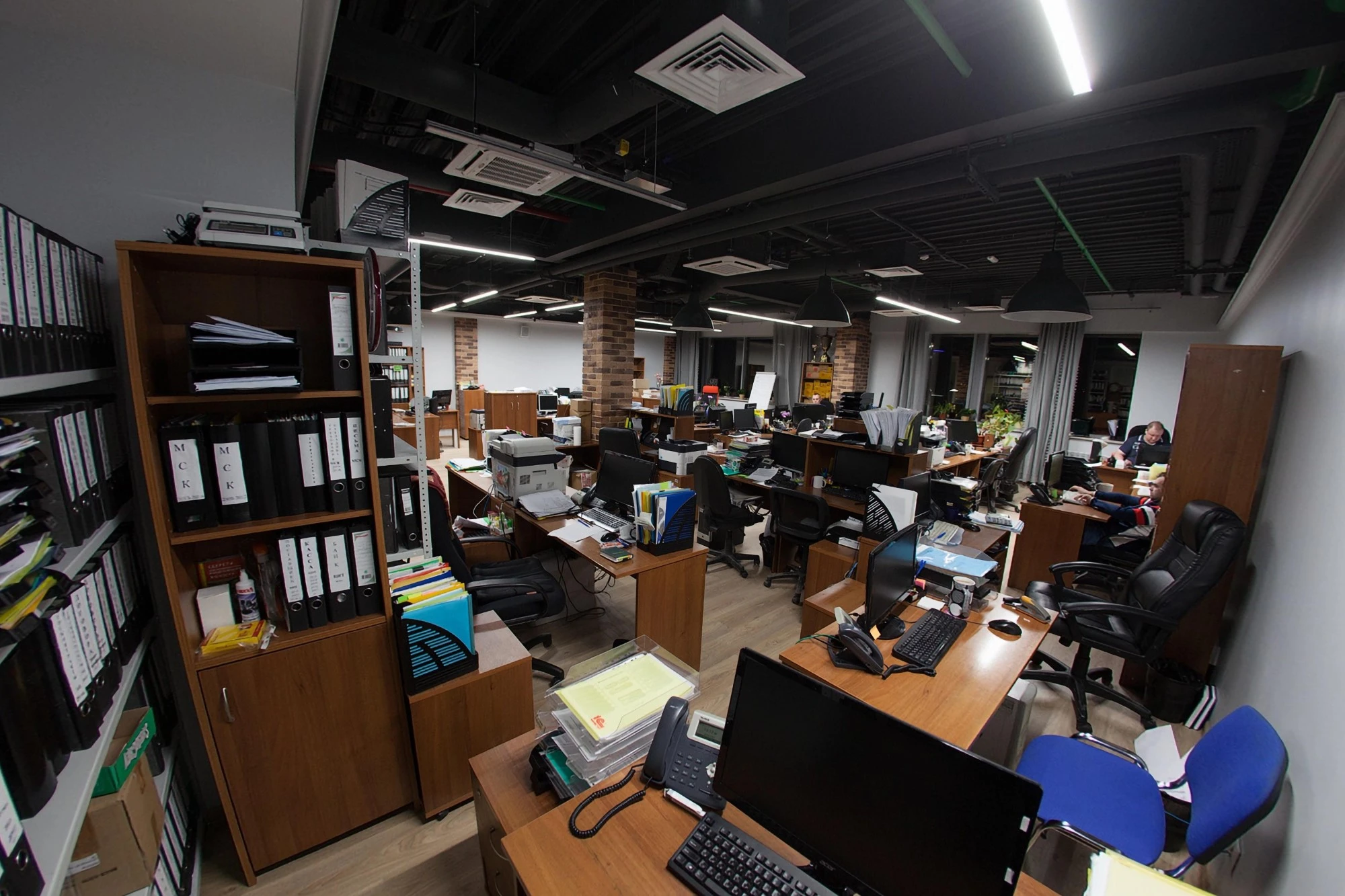 Компания MERTECO реализовала проект офиса для «Управляющей компании современного бизнеса», который располагается в бизнес-центре «Neo Geo» на юго-западе Москвы. Проект офисного пространства предполагает размещение большого количества рабочих мест в формате «open space». Для комфортного размещения сотрудников компании были реализованы проекты современных высококачественных систем вентиляции и кондиционирования воздуха, локального освещения, разработана система стеллажей для хранения большого количества документации, а также организовано место для отдыха и према пищи.