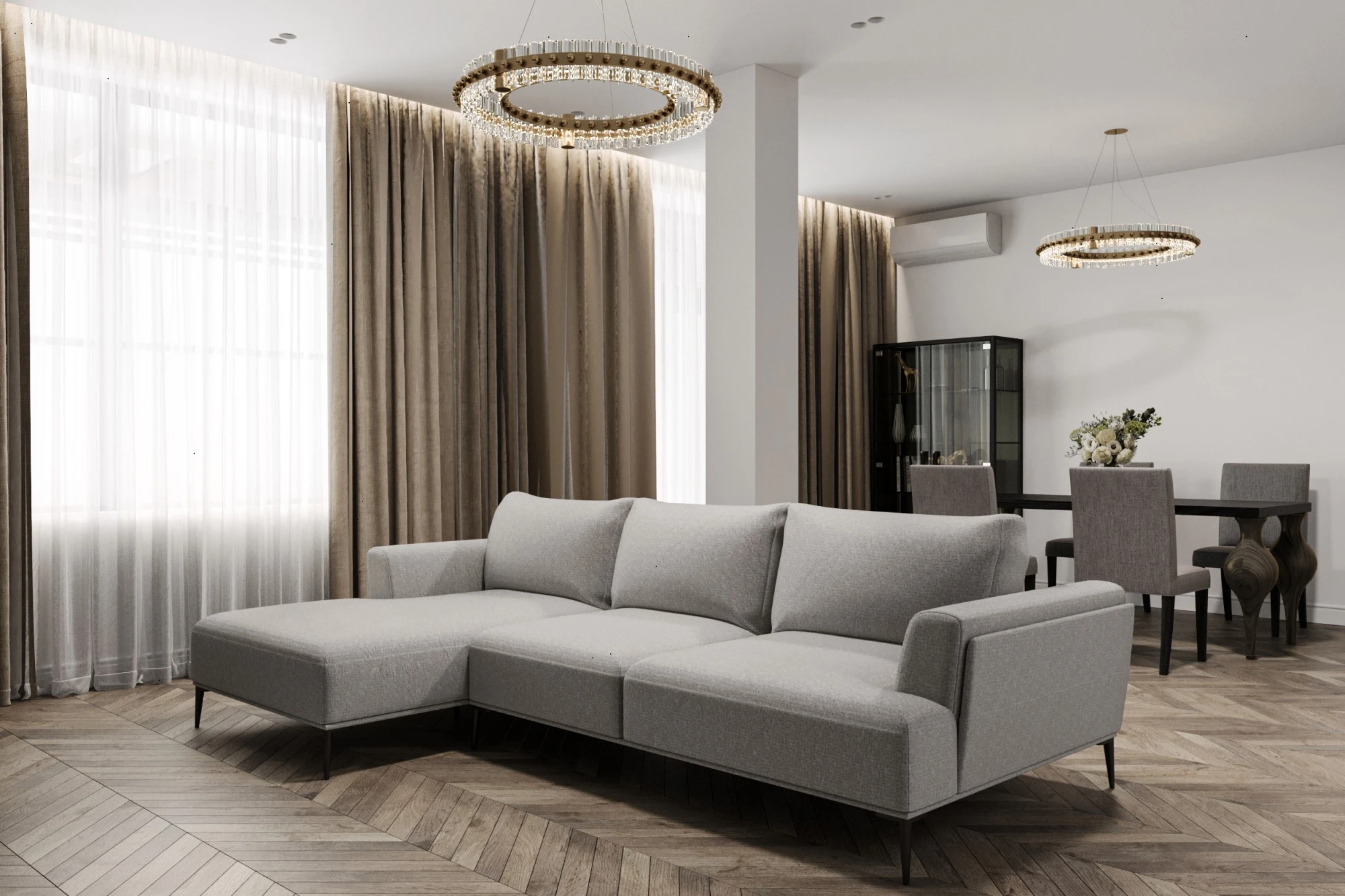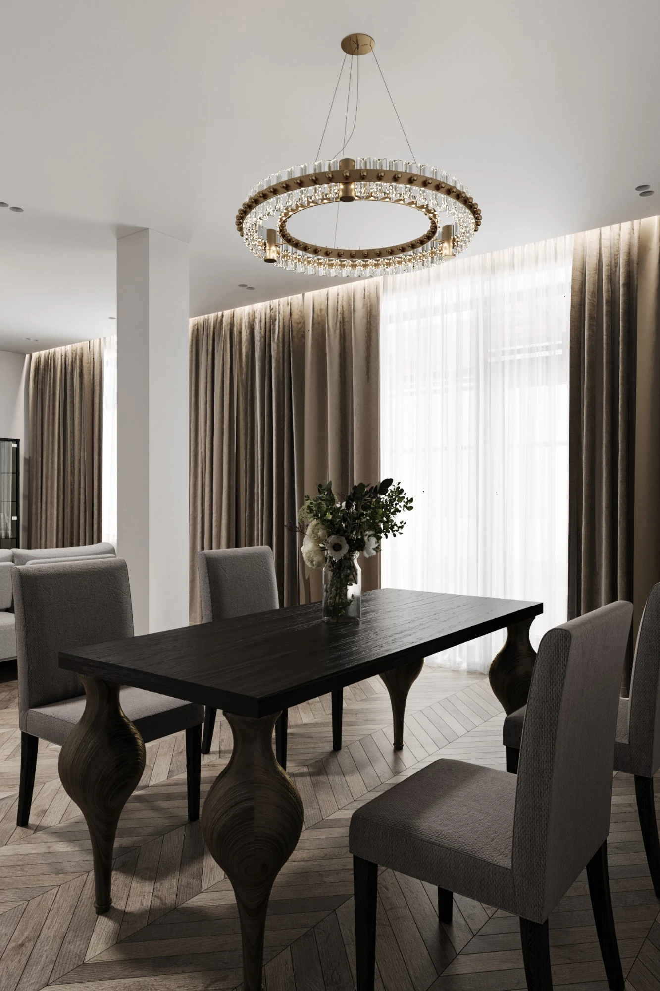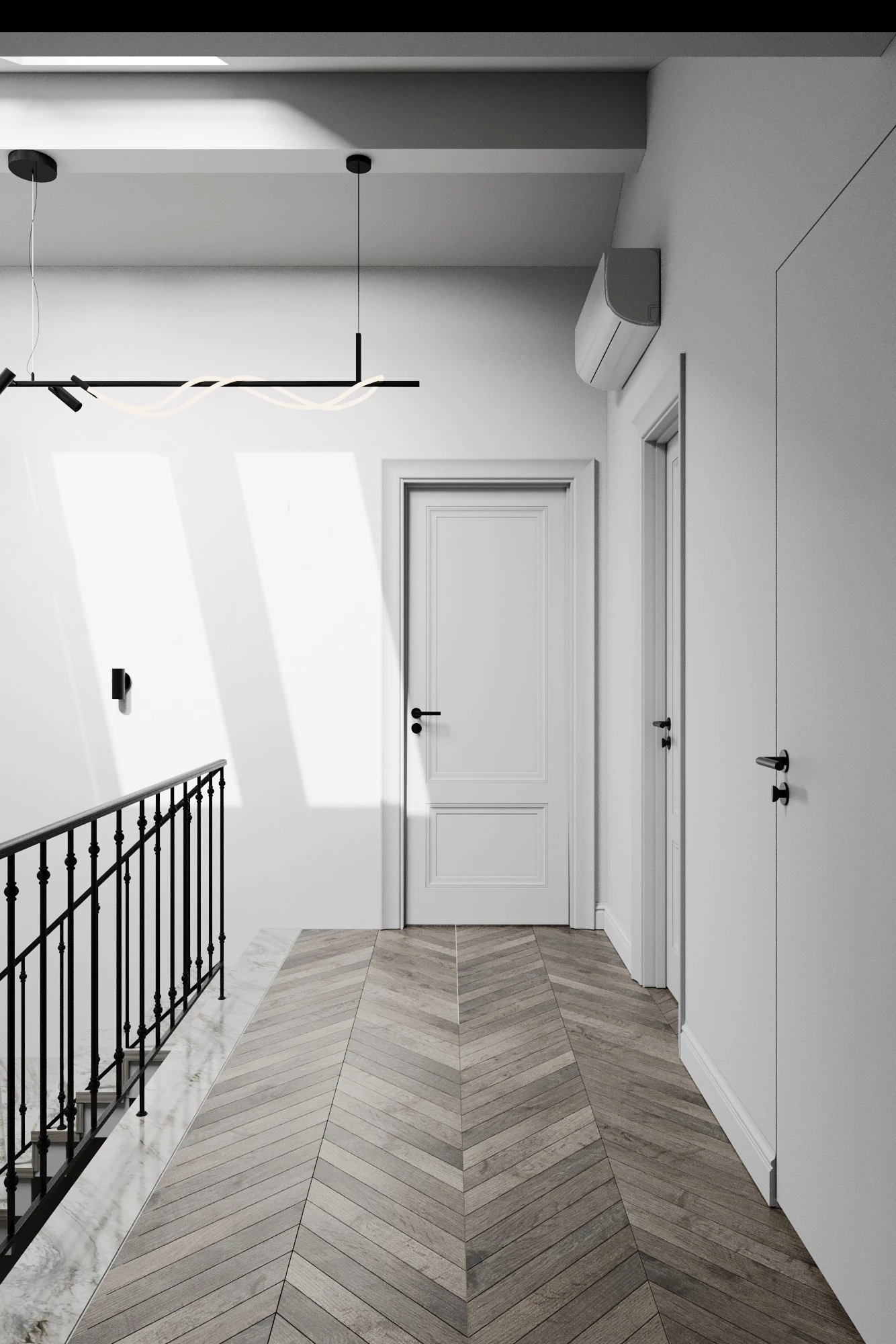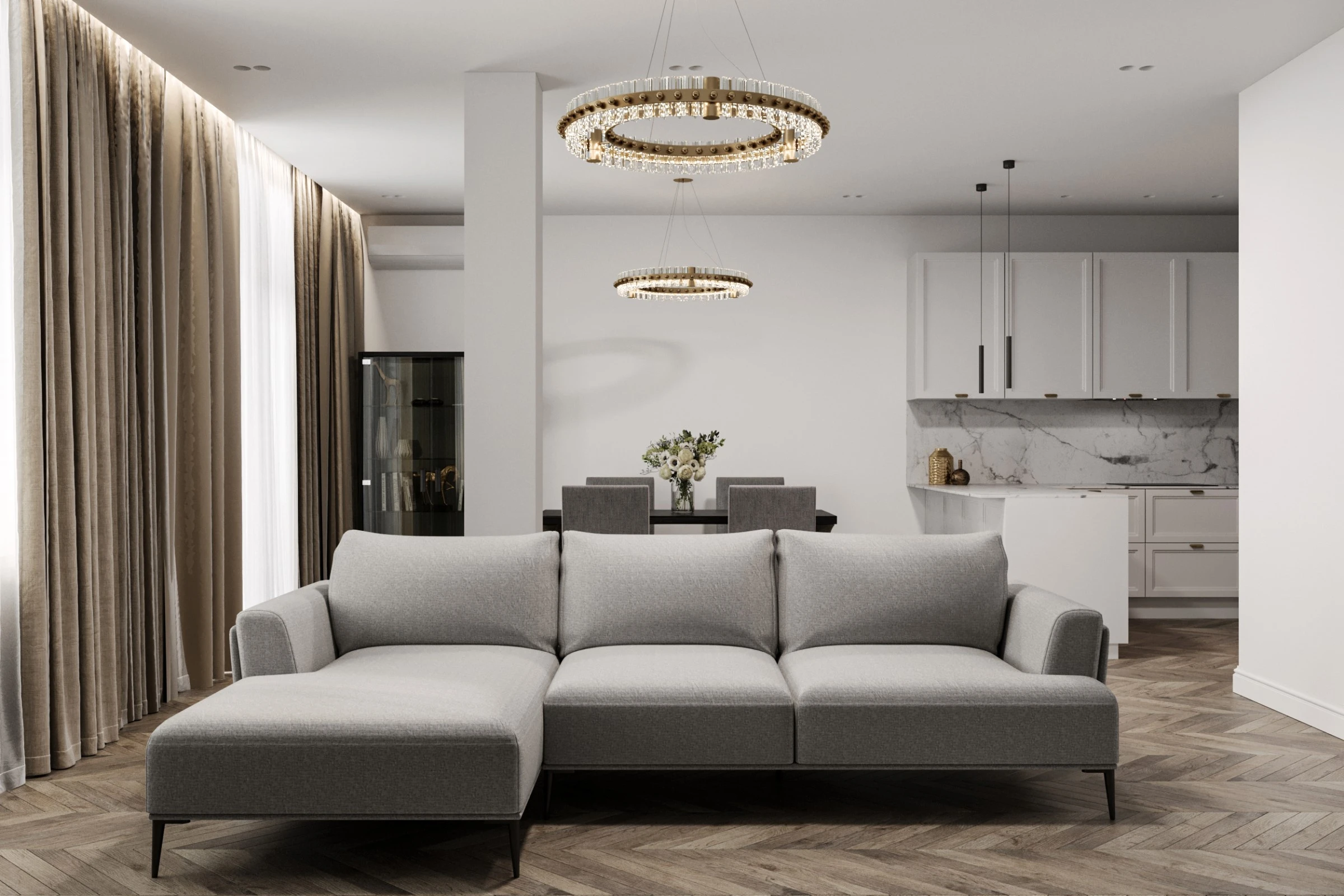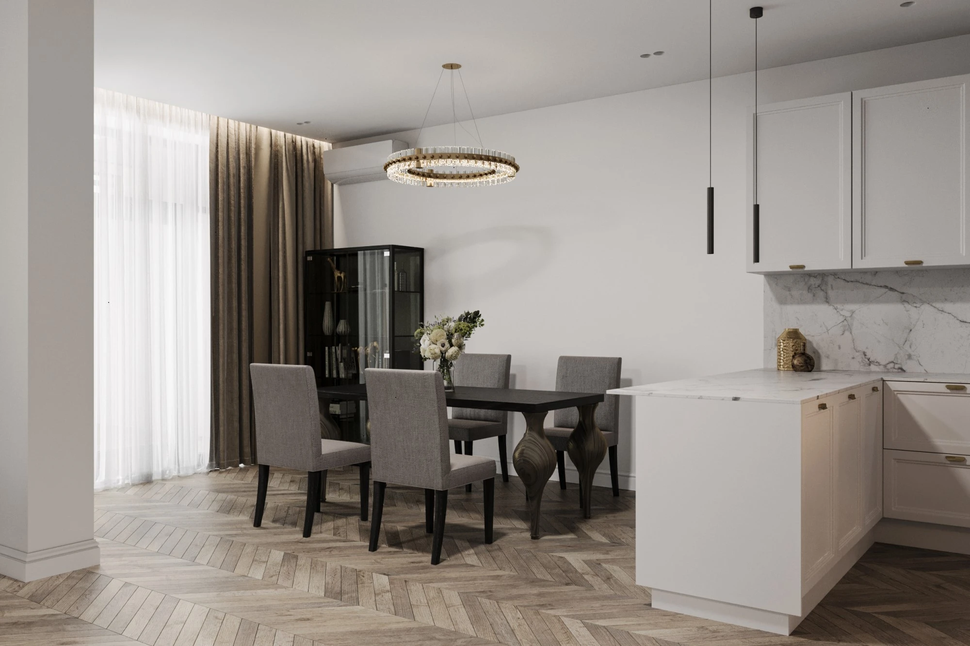 Трехэтажный таунхаус расположен в коттеджном поселке «Павлово-2» Московской области. На первом этаже размещена просторная гостиная, совмещенная с кухней и столовой. Интерьер выполнен в светлых спокойных тонах, создавая ощущение легкости и простора, а большие окна наполняют пространство естественным светом. Также в доме имеется просторная терраса, оборудованная входами из гостиной и кухни. Второй этаж предполает размещение трех спален и рабочего кабинета. Отделка второго этажа также выполнена в светлых тонах и классическом стиле. На мансардном этаже размещается рабочий кабинет в стиле LOFT, оборудована зона для отдыха с камином и место для занятия спортом, имеется еще одна спальня.