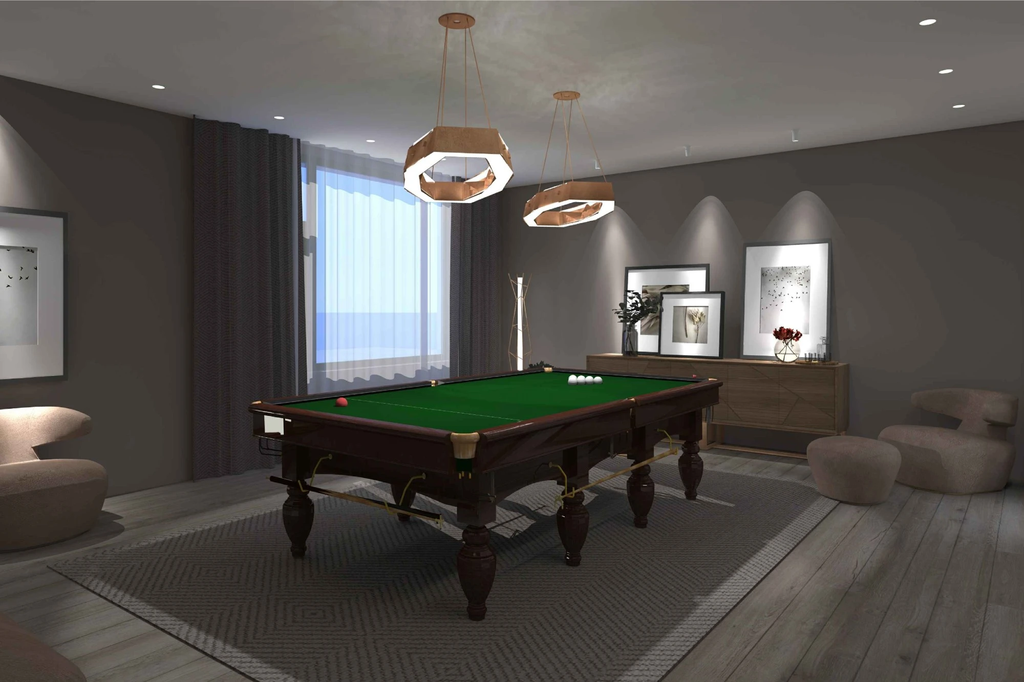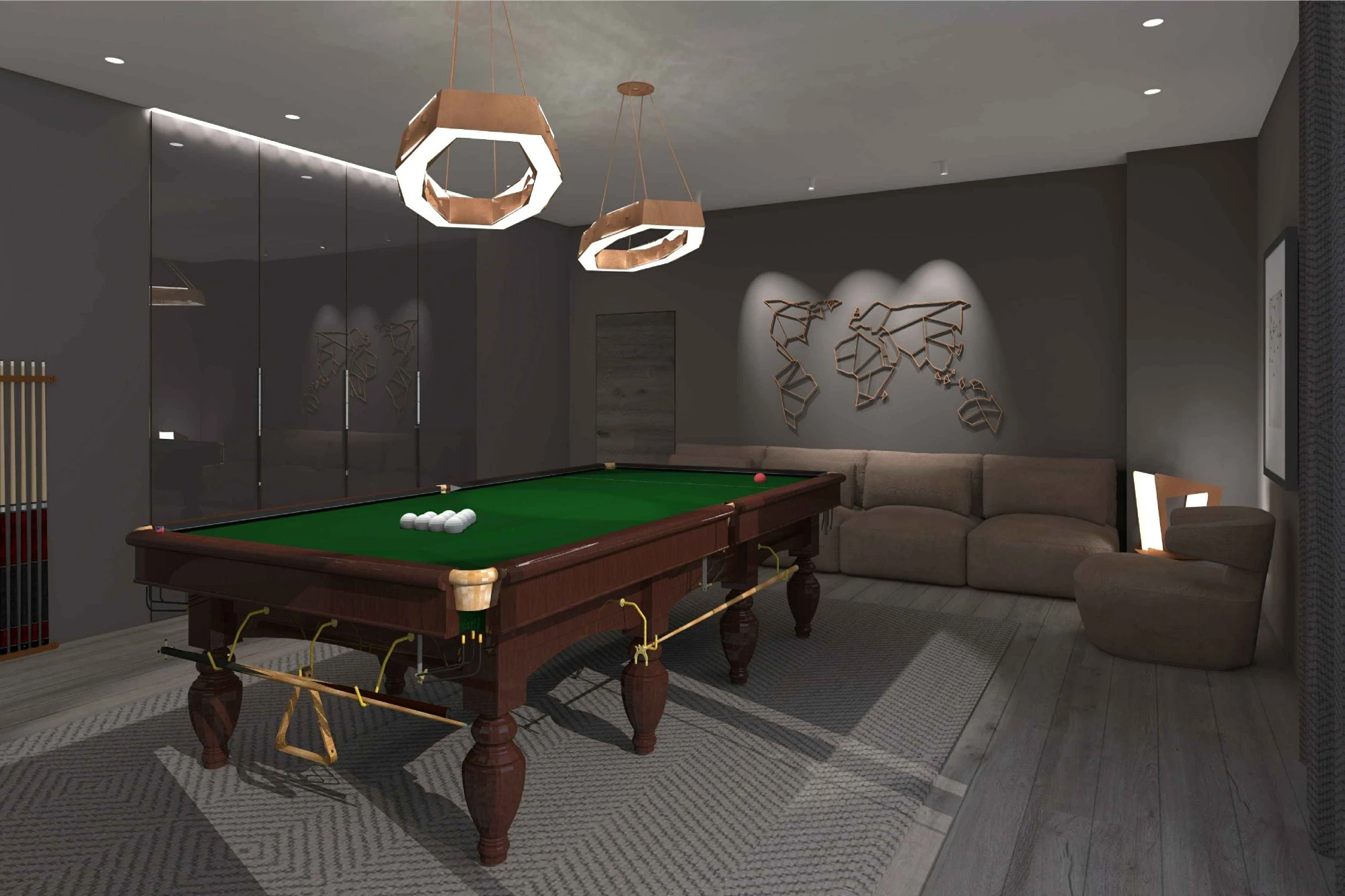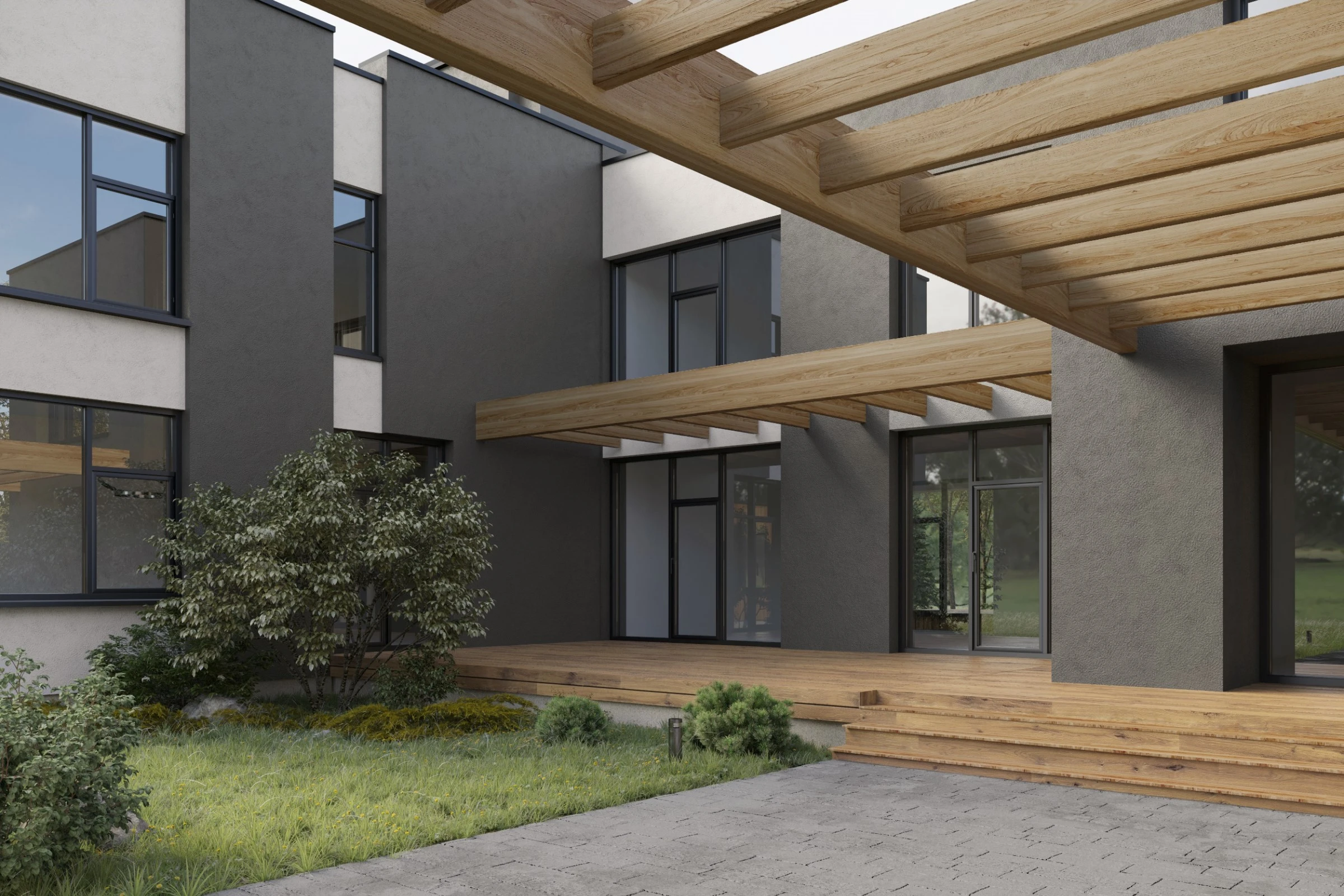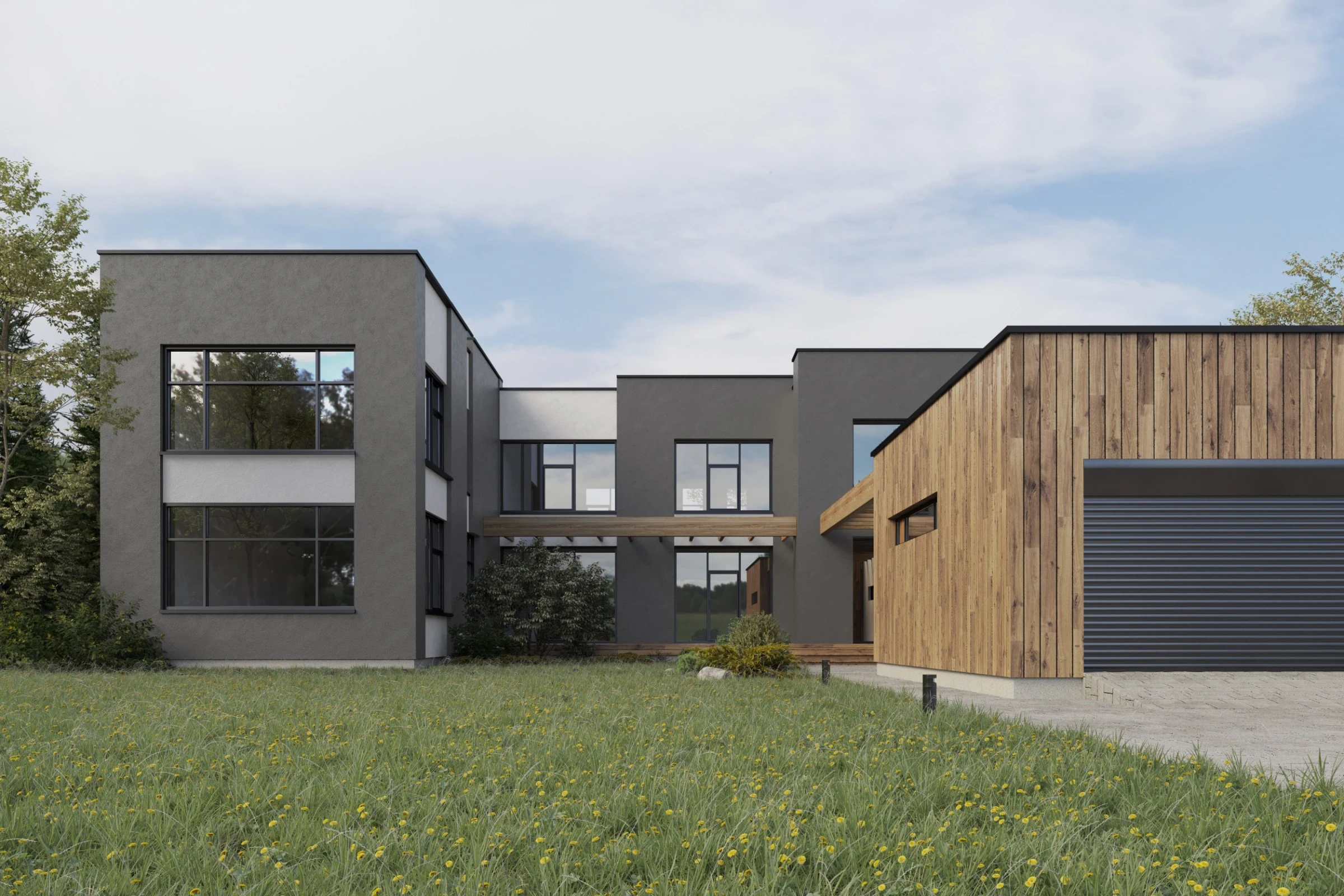 Двухэтажный частный дом расположен в коттеджном поселке «Миллениум парк» и предназначается для семьи, сочетая в себе комфорт, функциональность и уют. В доме предусмотрены: мастер-спальня, две детские спальни, две гостевые спальни, рабочий кабинет, кухня-столовая и большая гостиная. Также в доме располагается бильярдная, спортзал, зона СПА с сауной и баней. Форма строения обеспечивает приватную зону в центральной части, где расположена большая терраса, имеющая отдельные проходы из кухни-столовой и зоны СПА. Такое расположение террасы позволяет использовать её с максимальной функциональностью при различных сценариях в любое время года. На территории имеется отдельностоящий гараж с удобным выходом к жилому дому и подсобными помещениями, в которых возможно организовать комнату отдыха для обсуживающего персонала.