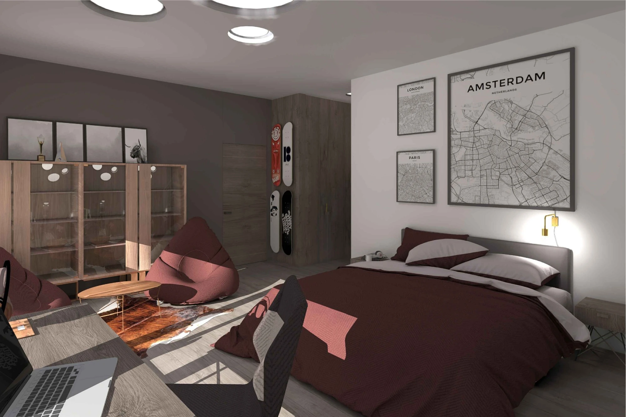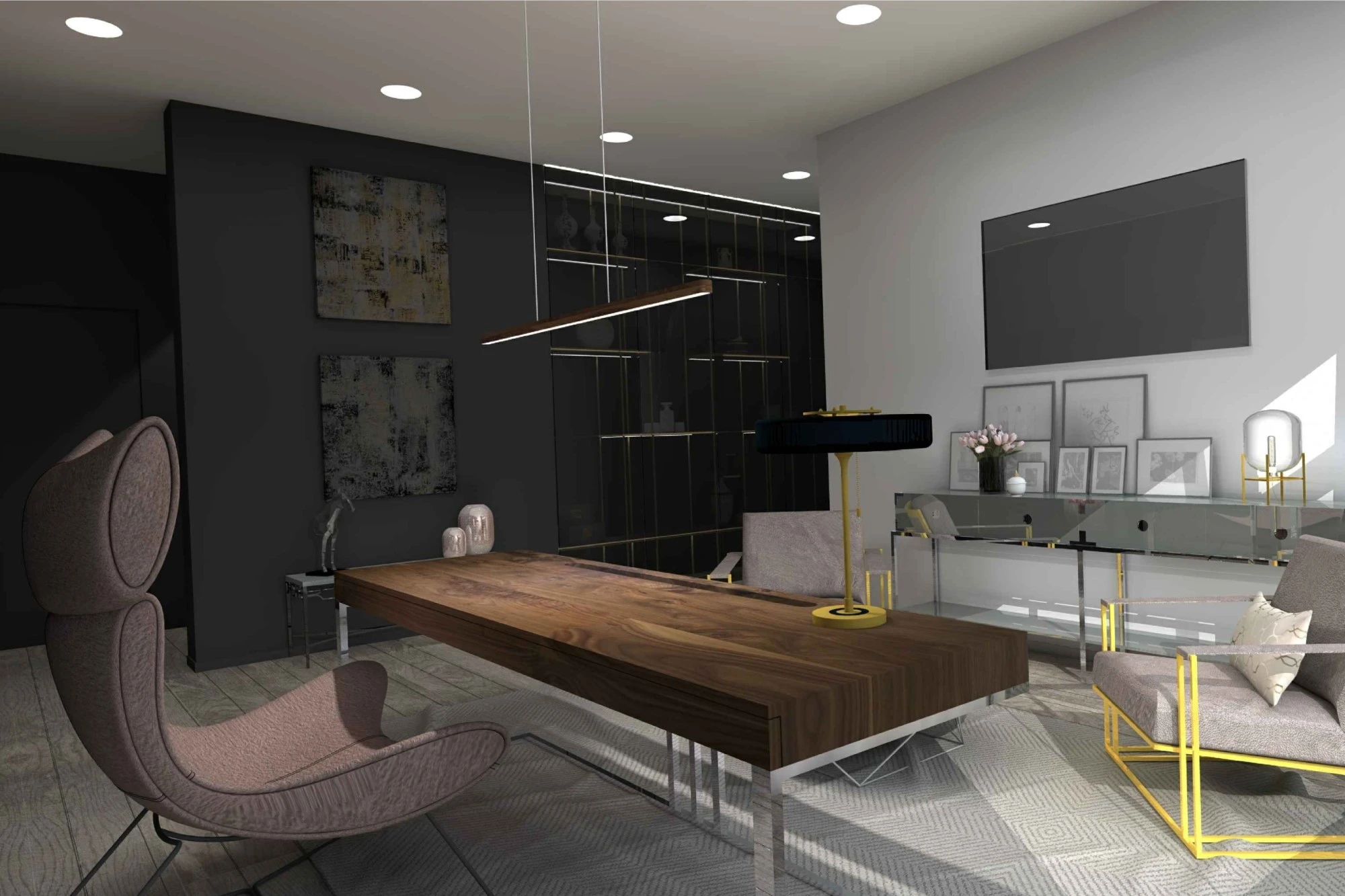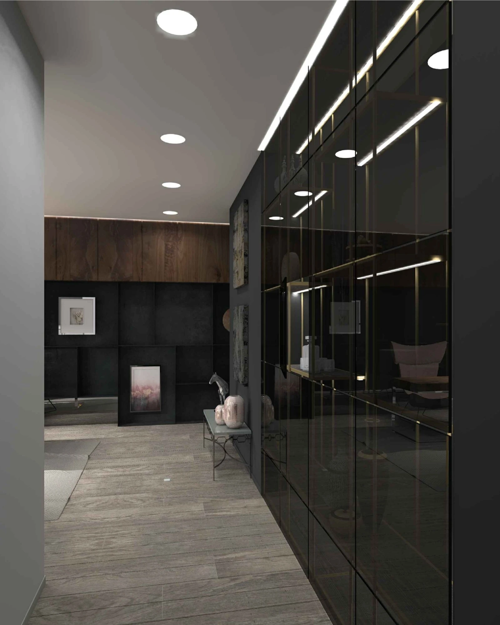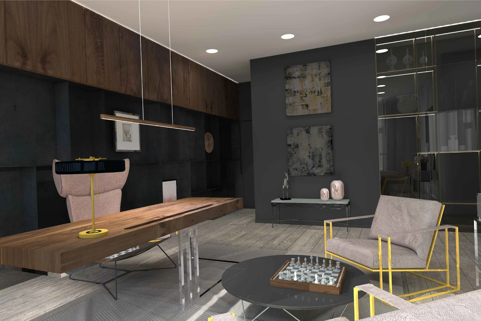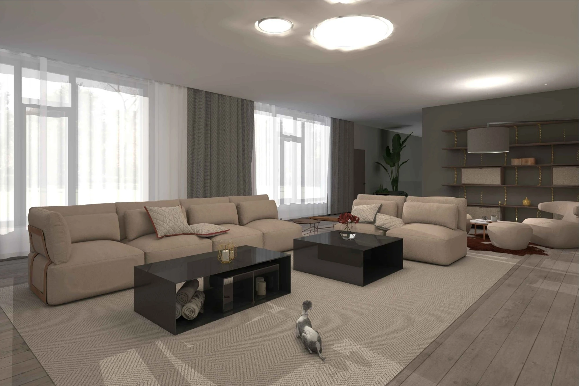 Двухэтажный частный дом расположен в коттеджном поселке «Миллениум парк» и предназначается для семьи, сочетая в себе комфорт, функциональность и уют. В доме предусмотрены: мастер-спальня, две детские спальни, две гостевые спальни, рабочий кабинет, кухня-столовая и большая гостиная. Также в доме располагается бильярдная, спортзал, зона СПА с сауной и баней. Форма строения обеспечивает приватную зону в центральной части, где расположена большая терраса, имеющая отдельные проходы из кухни-столовой и зоны СПА. Такое расположение террасы позволяет использовать её с максимальной функциональностью при различных сценариях в любое время года. На территории имеется отдельностоящий гараж с удобным выходом к жилому дому и подсобными помещениями, в которых возможно организовать комнату отдыха для обсуживающего персонала.