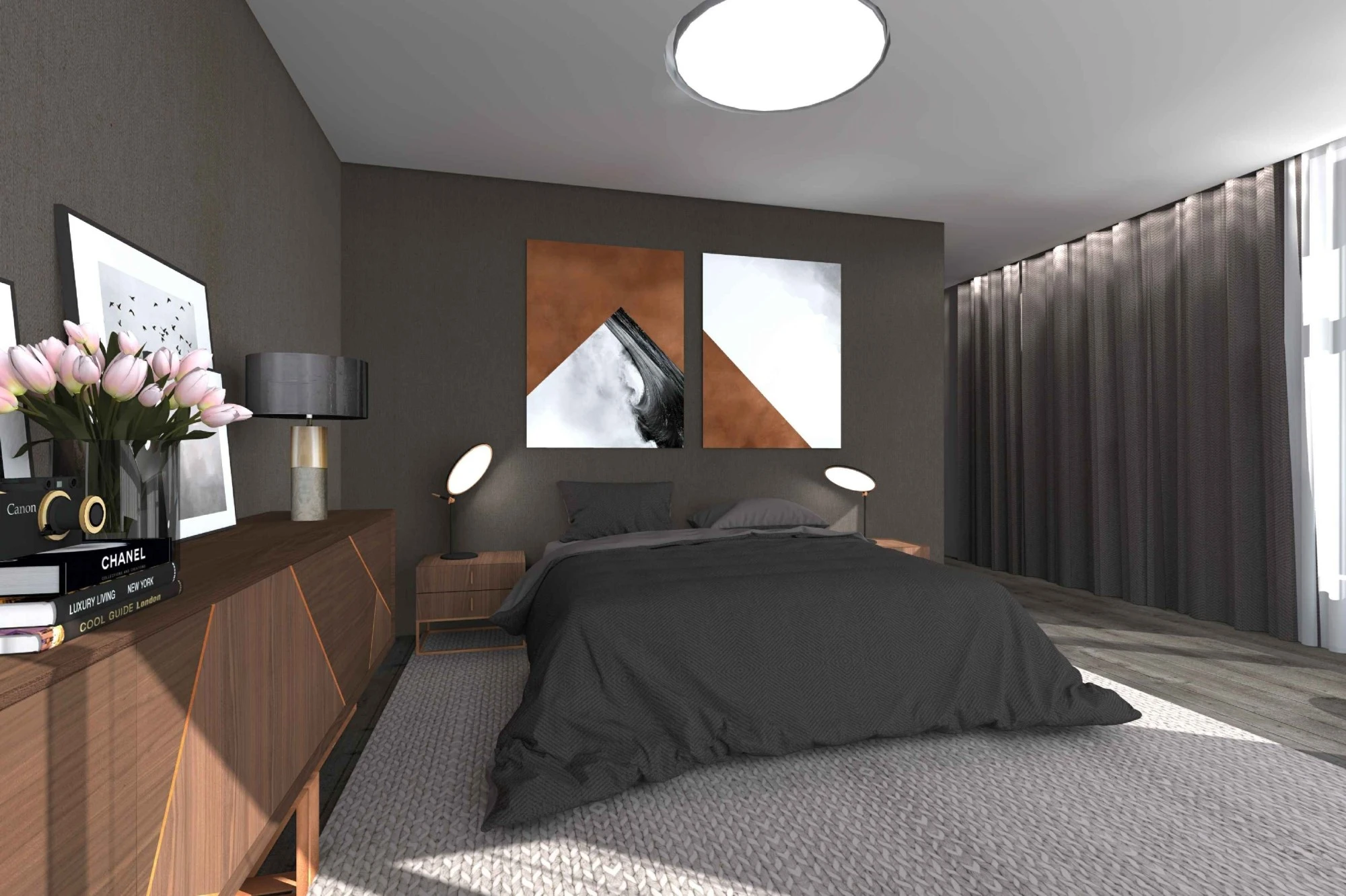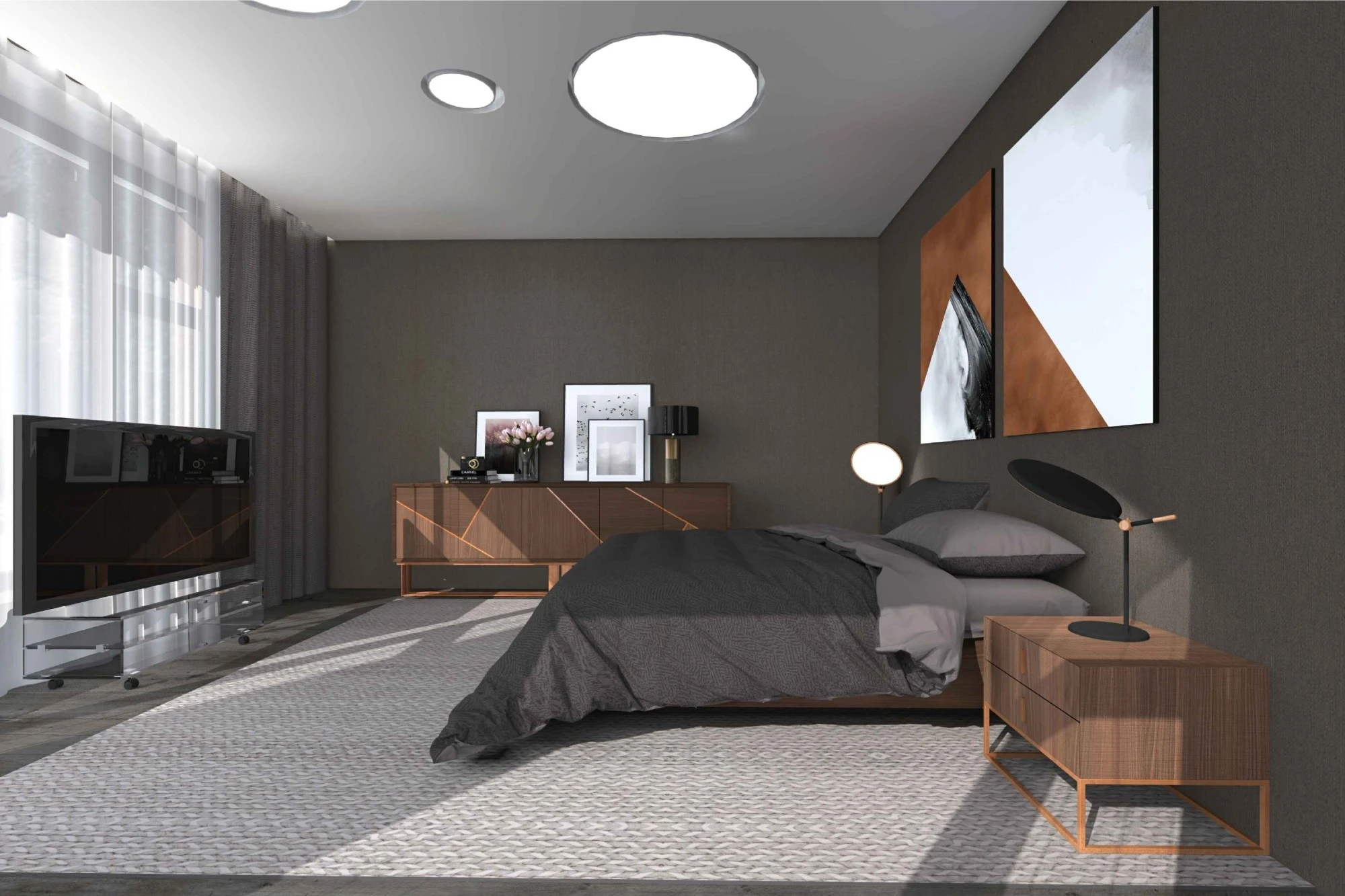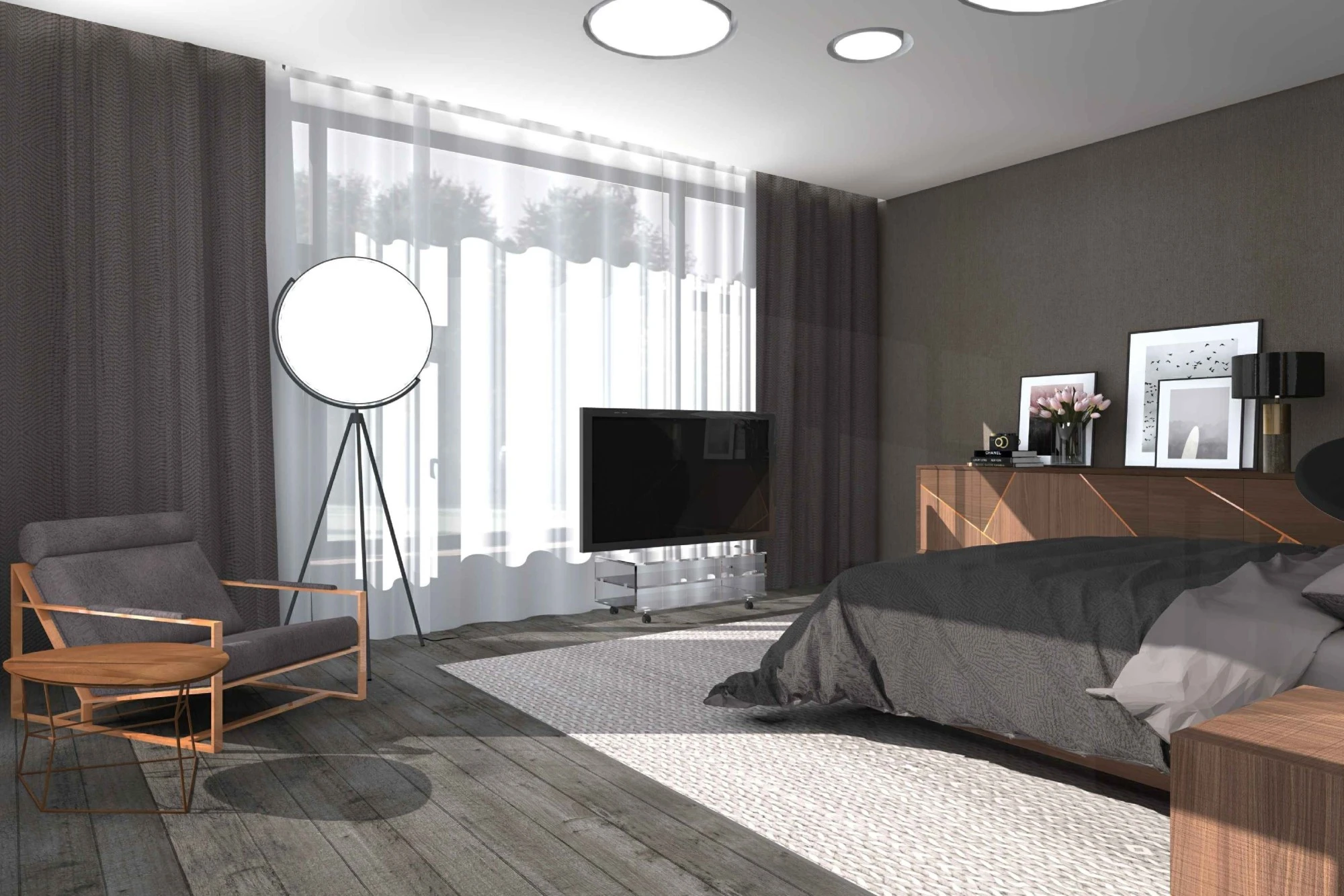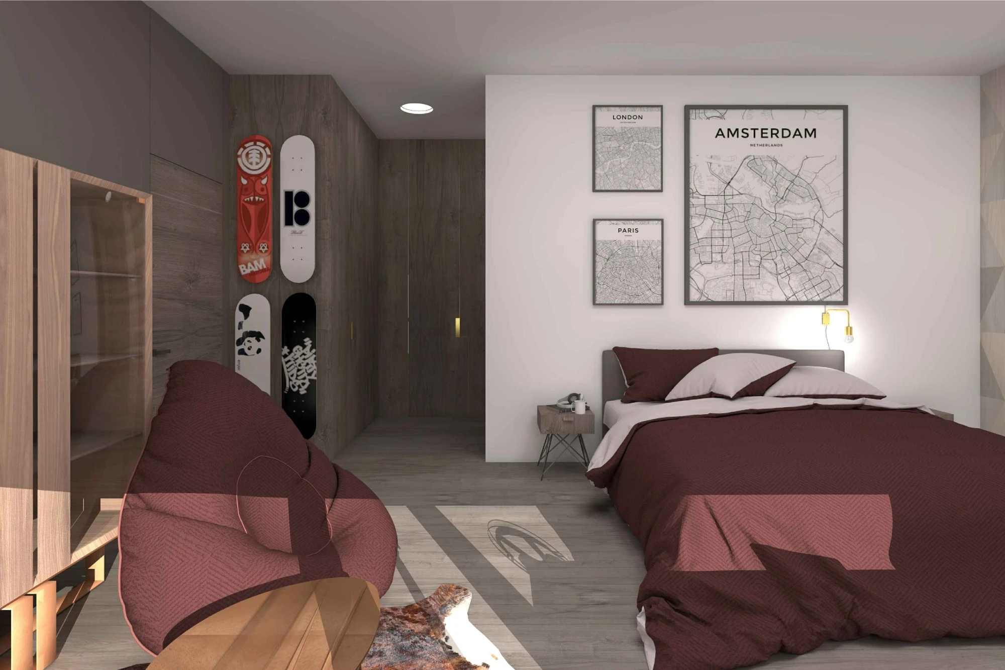 Двухэтажный частный дом расположен в коттеджном поселке «Миллениум парк» и предназначается для семьи, сочетая в себе комфорт, функциональность и уют. В доме предусмотрены: мастер-спальня, две детские спальни, две гостевые спальни, рабочий кабинет, кухня-столовая и большая гостиная. Также в доме располагается бильярдная, спортзал, зона СПА с сауной и баней. Форма строения обеспечивает приватную зону в центральной части, где расположена большая терраса, имеющая отдельные проходы из кухни-столовой и зоны СПА. Такое расположение террасы позволяет использовать её с максимальной функциональностью при различных сценариях в любое время года. На территории имеется отдельностоящий гараж с удобным выходом к жилому дому и подсобными помещениями, в которых возможно организовать комнату отдыха для обсуживающего персонала.